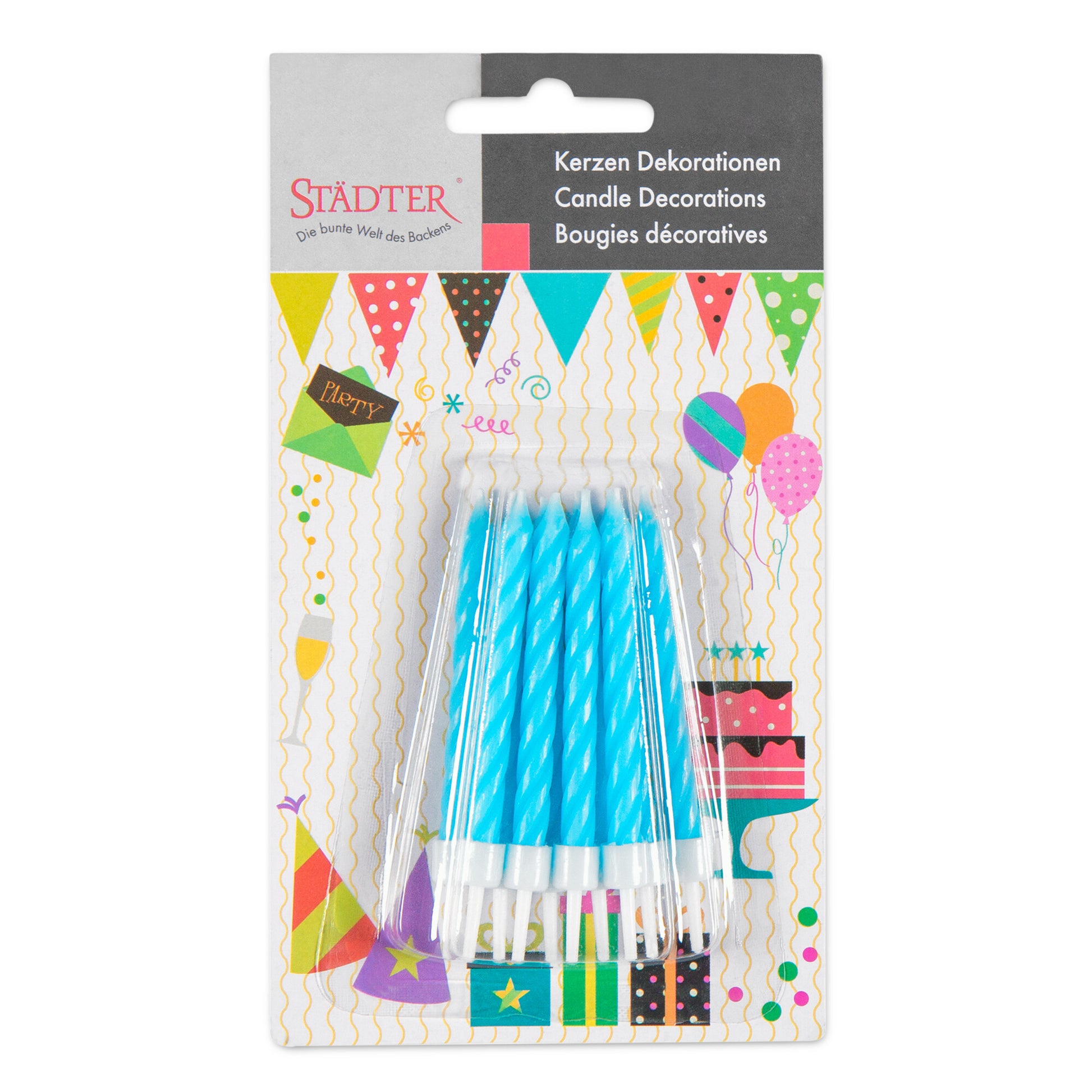 Geburtstagskerzen mit Halter hellblau 10 Stück