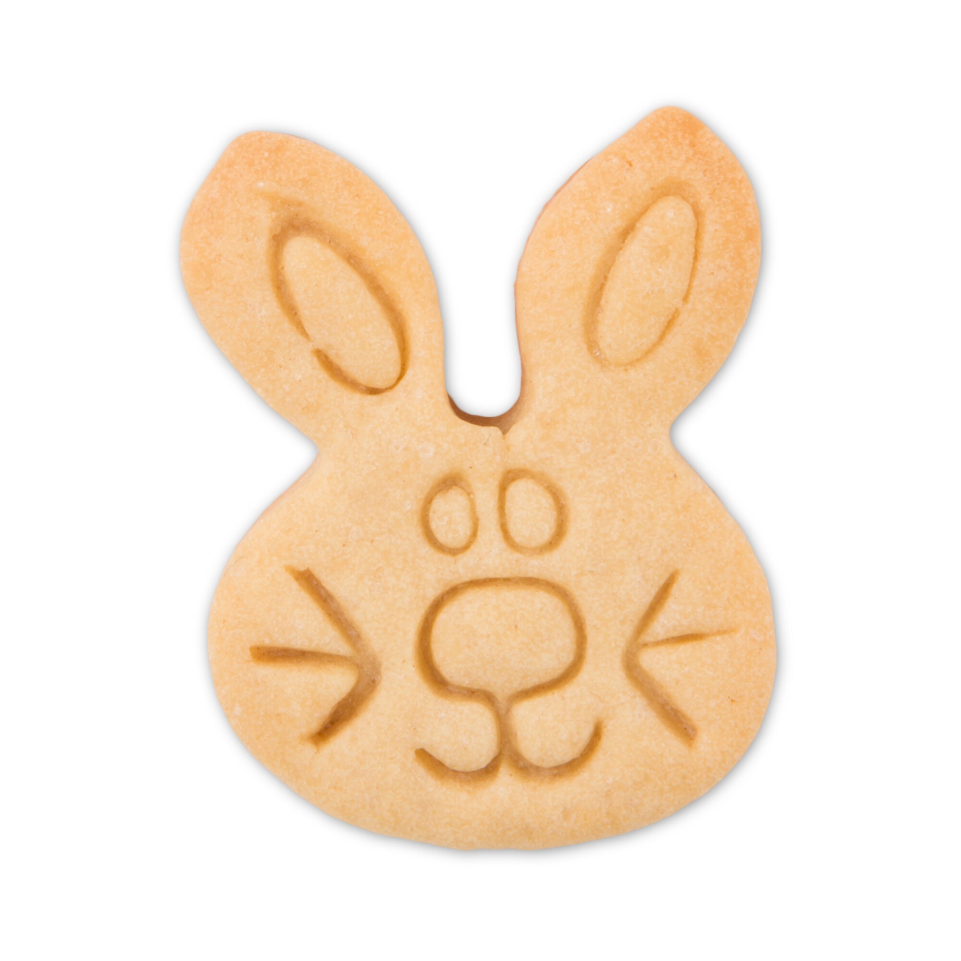 Das Hasengesicht kommt mit vorgeprägten Ohren, Augen, Stupsnase, Mund und Barthaaren. Nach dem Ausstechen kann es ganz einfach bemalt werden!