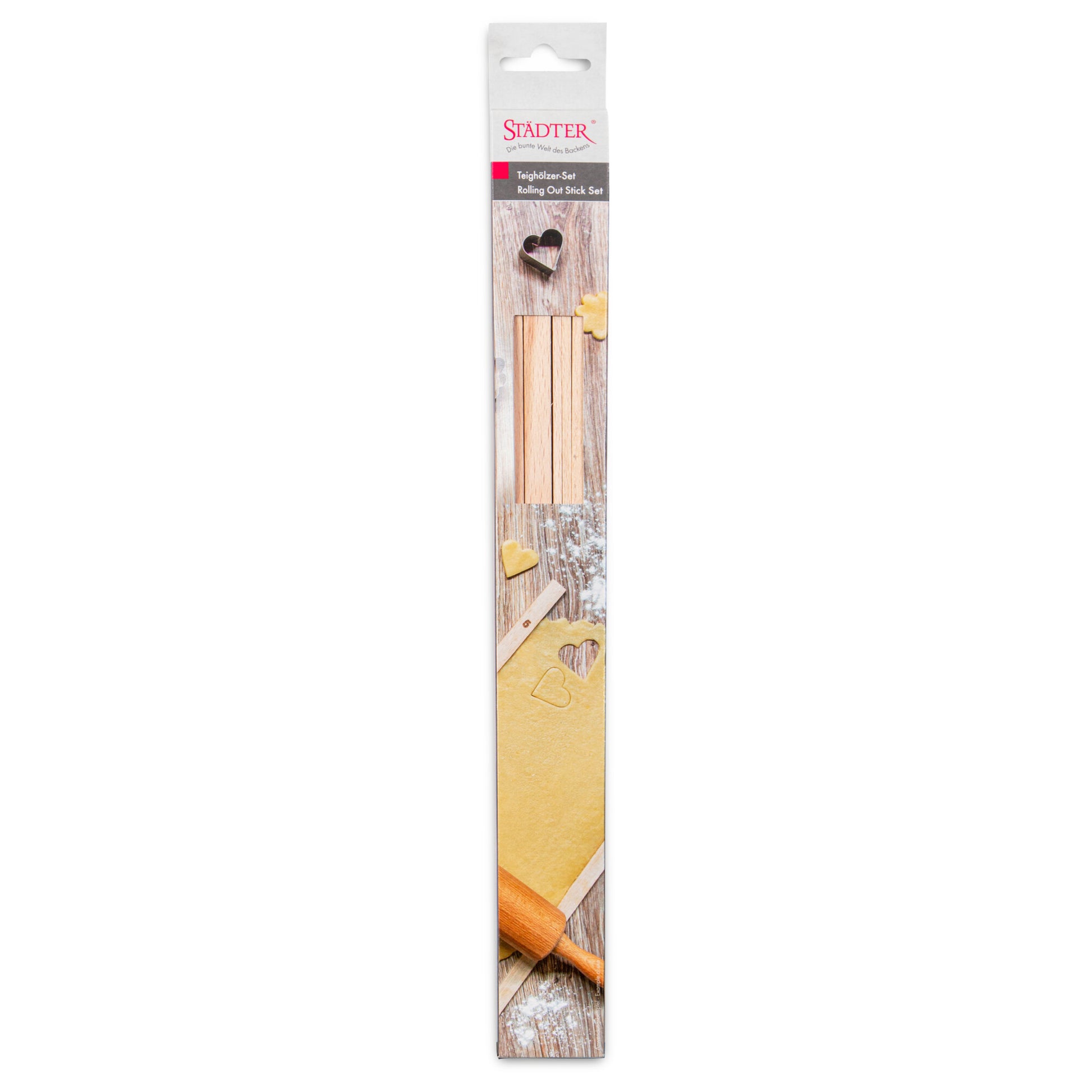 Wenn Ihr Teig immer die gleiche Höhe oder Stärke haben soll, wird Sie dieses Teighölzer-Set erfreuen. Mit den Hölzern erzielen Sie eine gleichmäßige Teigdicke beim Ausrollen, und das Gebäck hat immer die gleiche Stärke.